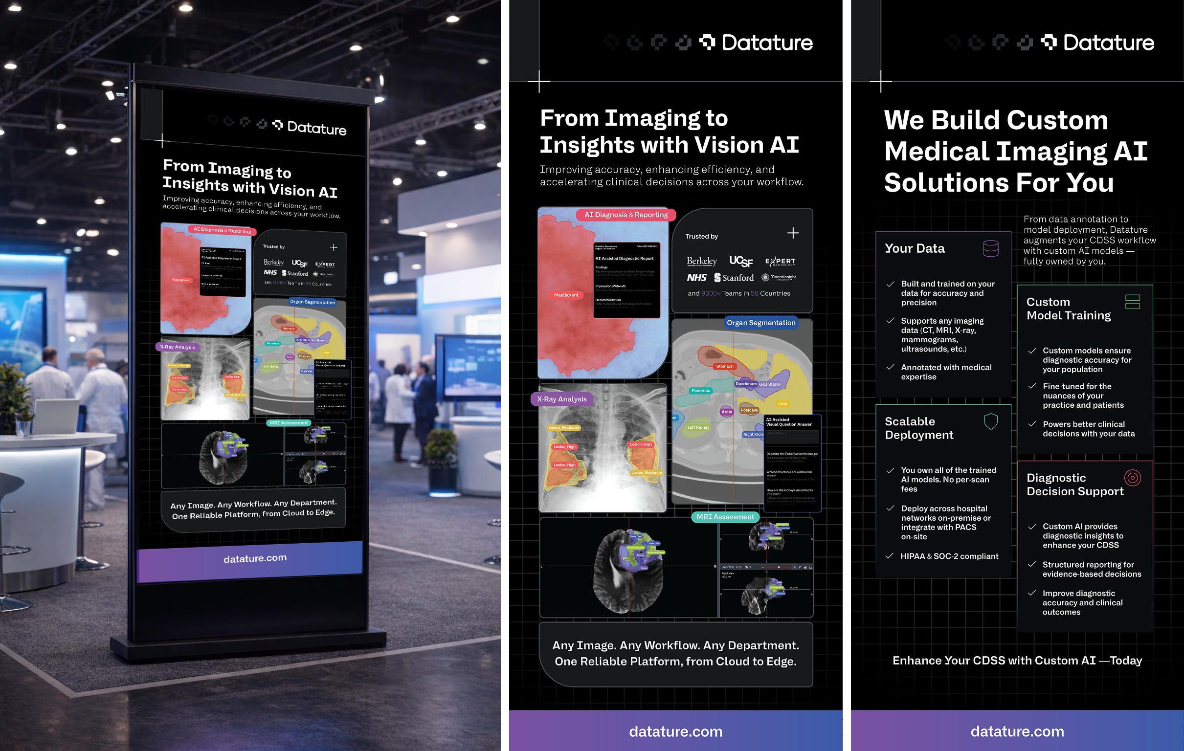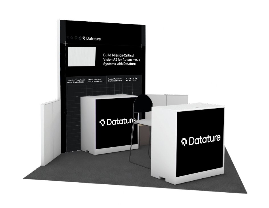 Backdrop designs vary by exhibition, aligning with Datature’s strategy for each industry and product focus. While the visual system remains consistent, the messaging shifts to emphasize key use cases and product value.